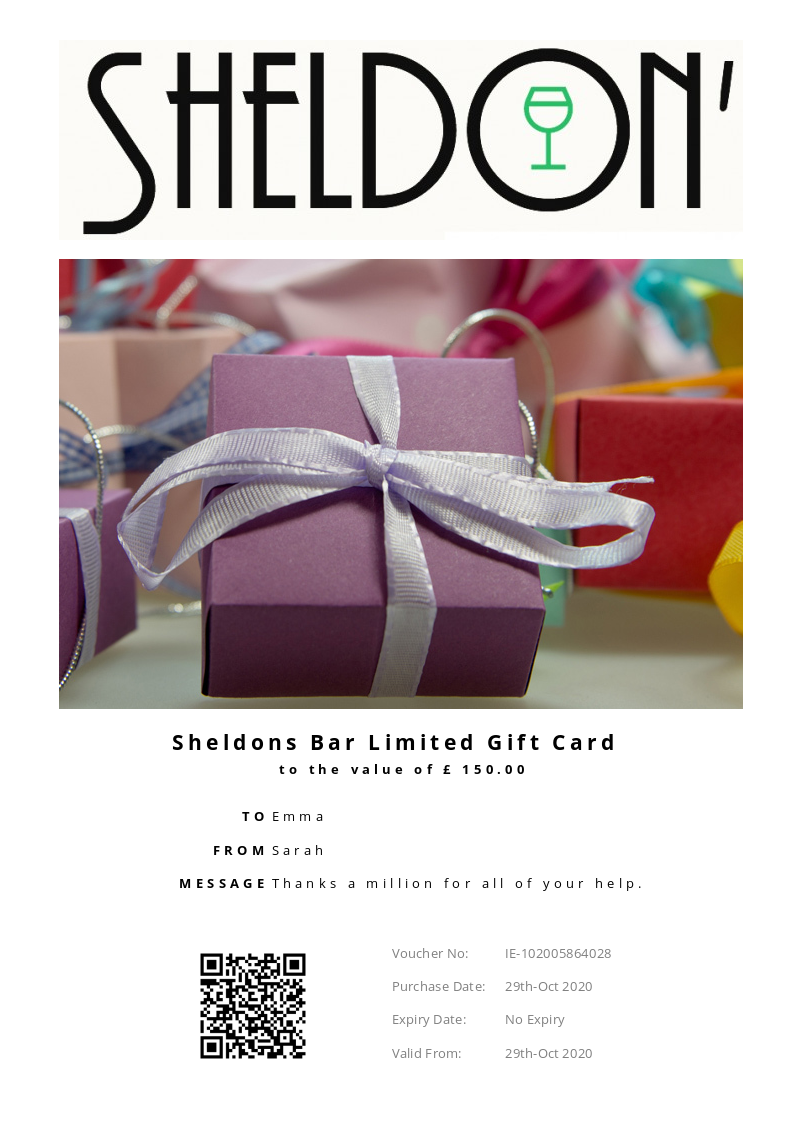 Sheldons Bar Limited uses Voucher Connect to sell online.